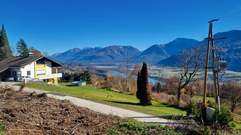 • Blick v. Baugrund, ober der Strasse