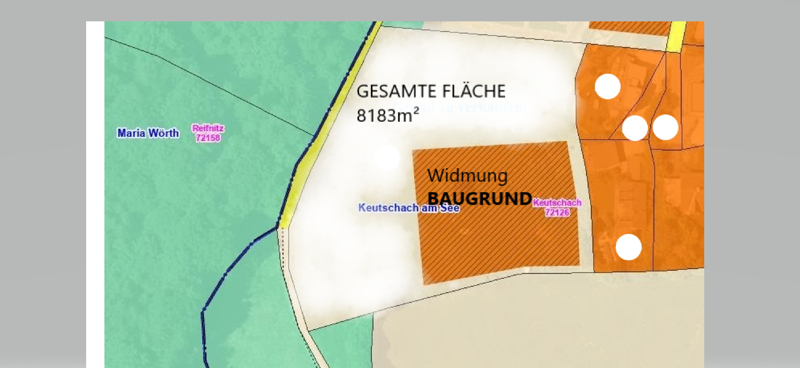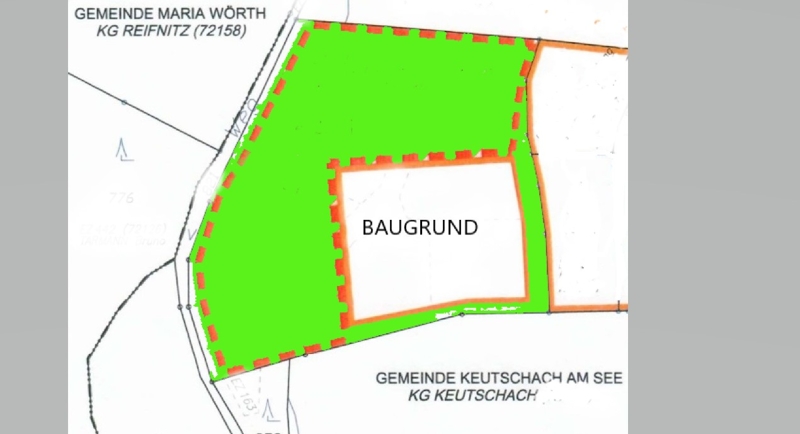 Das Grundstück, in KG Keutschach ist laut rechtkräftigen Flächenwidmungsplan im Ausmaß von ca. 3000m2 als Bauland Wohngebiet gewidmet. Die Bebauungsdichte It. Textlichen Bebauungsplan beträgt 0,6.